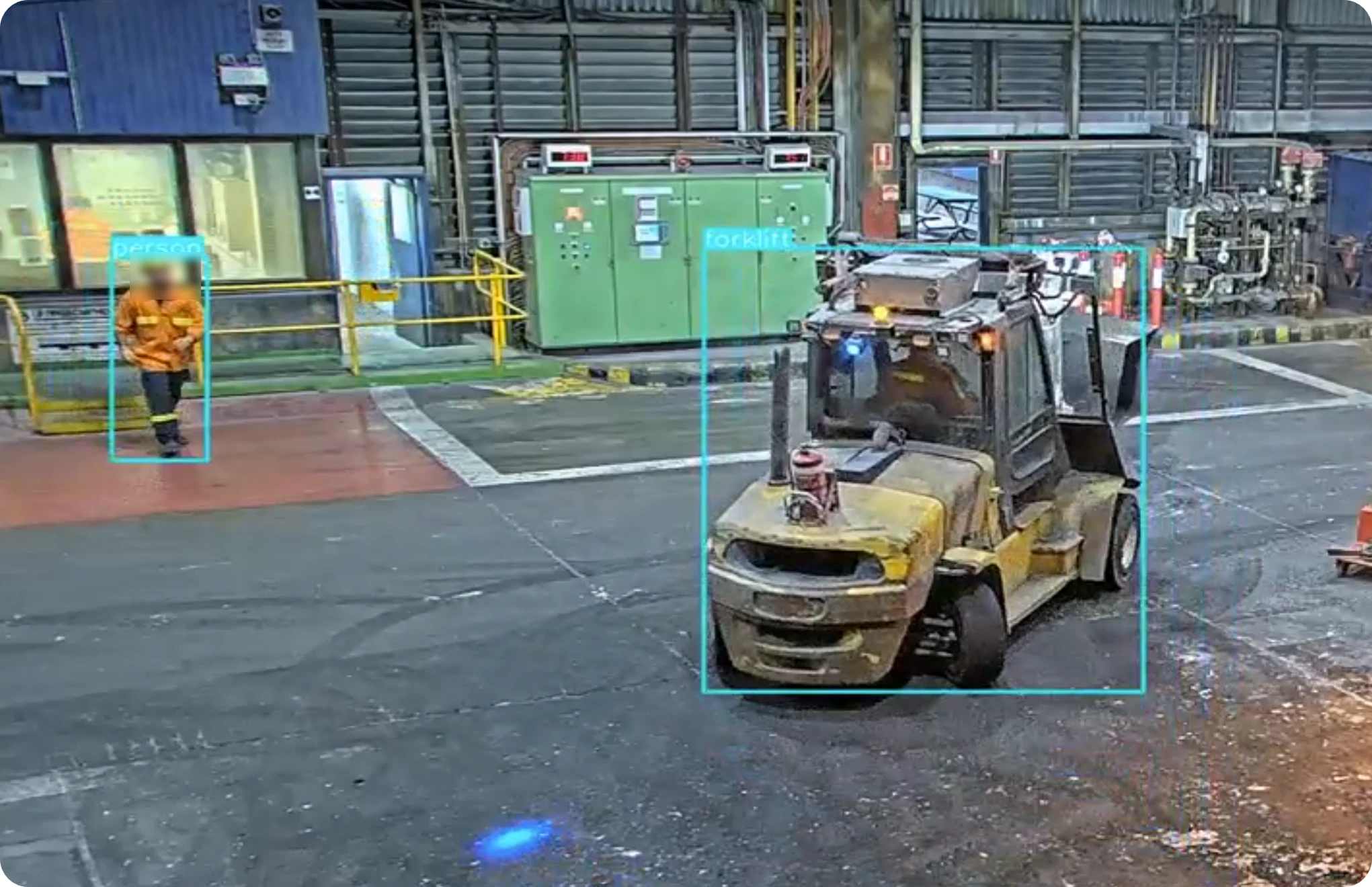 ✅ Forklift & Pedestrian Protection – Monitors high-risk zones around forklifts and mobile equipment, instantly alerting when people enter unsafe areas.