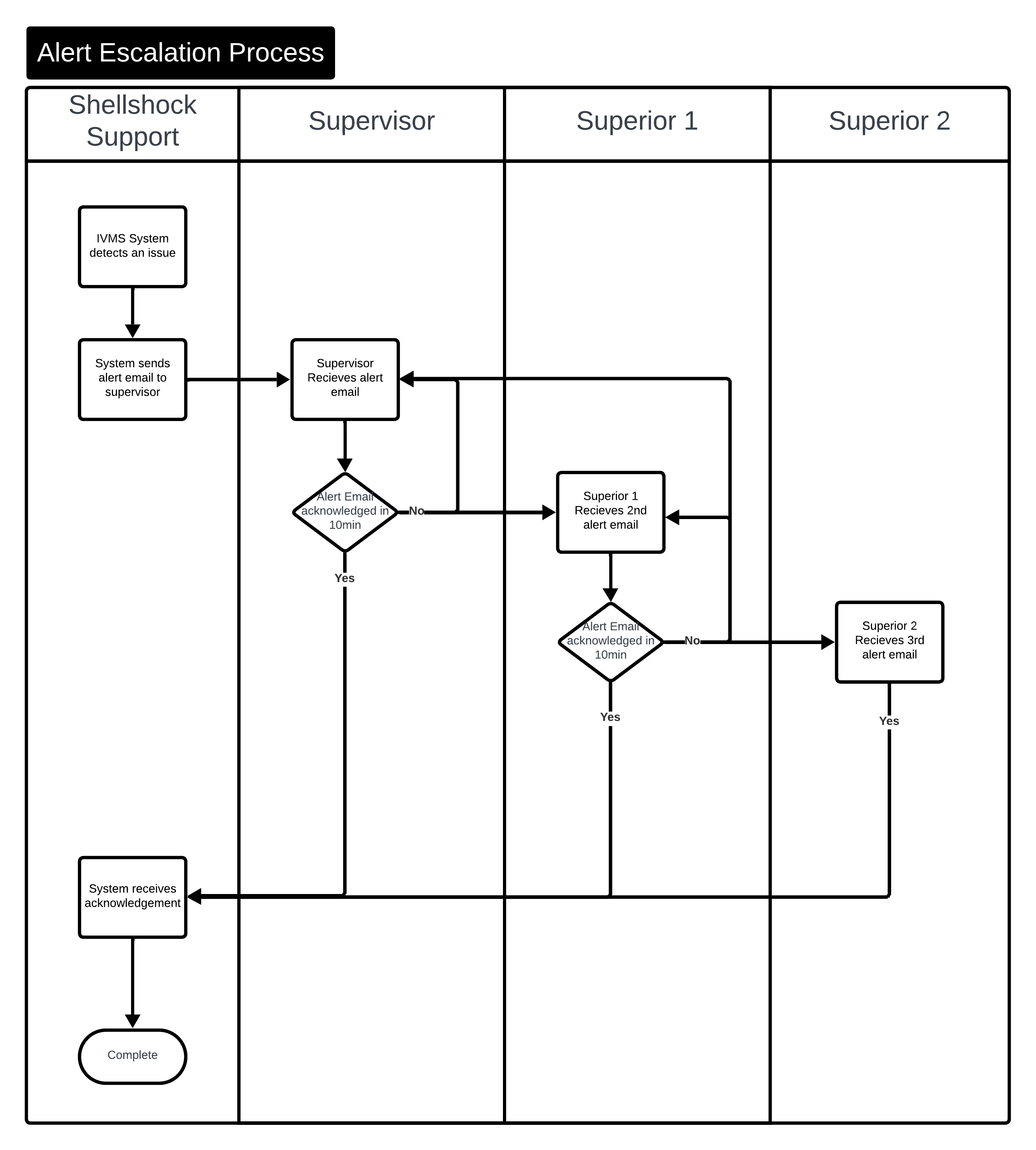 The Minor Incident Workflow outlines the step-by-step process for addressing non-critical safety incidents detected by the Shellshock VIS system. The workflow is designed to deliver prompt driver alerts, thorough incident logging, and structured supervisor involvement after repeated occurrences, maintaining safety standards and operational continuity.